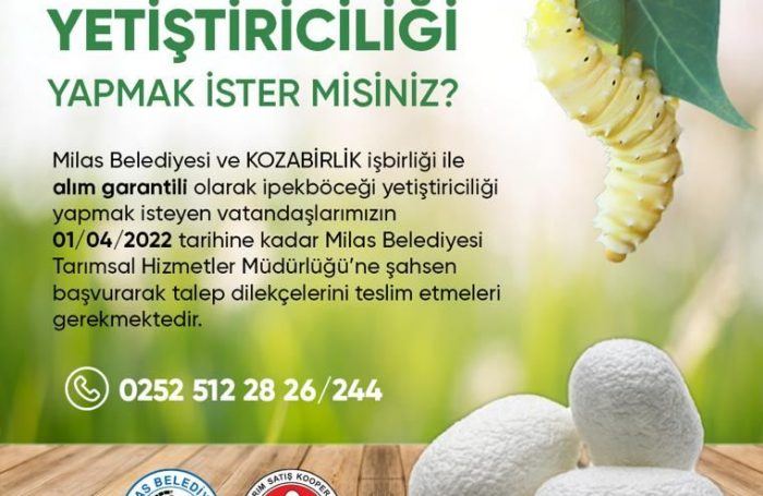 Alım garantili olarak ipek böceği yetiştiriciliği yapmak isteyen vatandaşlar 1 Nisan 2022 tarihine kadar Milas Belediyesi Tarımsal Hizmetler Müdürlüğü’ne şahsen başvurarak talep dilekçelerini teslim etmeleri gerekiyor.