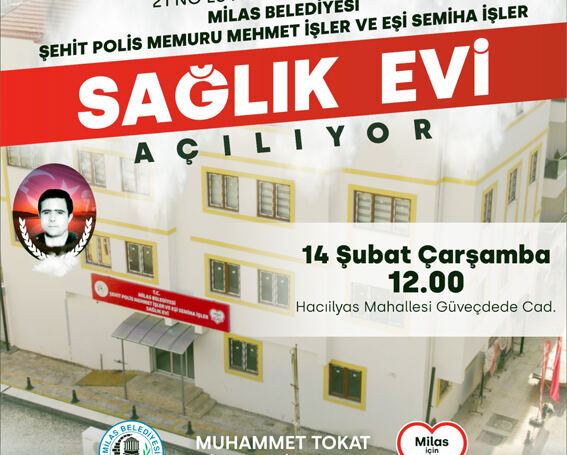 Şehit Polis Memuru Mehmet İşler’in eşi Semiha İşler’in destekleriyle Milas Belediyesi tarafından yapılan 21 No’lu Aile Hekimliği Birimi Milas Belediyesi Şehit Polis Memuru Mehmet İşler ve Eşi Semiha İşler Sağlık Evi, 14 Şubat Çarşamba günü saat 12.00’de düzenlenecek törenle açılacak.