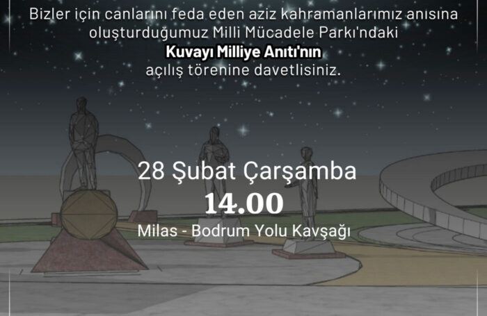 Milas Bodrum Kavşağı’ndaki “Milli Mücadele Parkı” içerisinde yer alan Kuvayı Milliye Anıtı’nın açılışına tüm Milas halkını davet eden Milas Belediye Başkanı Muhammet Tokat, “Gururla sunduğumuz Milas Şehitleri ve Kuvayı Milliye Anıtı, anıtsal beş heykelden oluşan etkileyici bir yapıya sahip olacak. Bu büyük projemizi tamamlayarak ilçemizin tarihine ve kültürüne önemli bir katkıda bulunduk. Kültür ve Turizm Bakanlığı Güzel Sanatlar Eseri olarak tescillenen heykellerimizi tasarlayan ve üreten Alper Çınar Plastik Sanatlar Atölyesi sanatçılarına bir kez daha sonsuz teşekkür ve şükranlarımız sunuyorum.” dedi.
