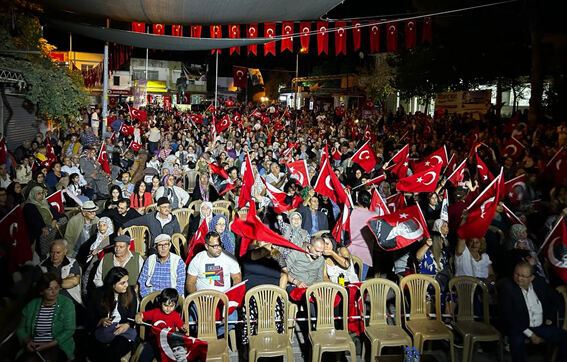 Selimiye’de ise binlerce kişi, saat 19.30’da belediye ek hizmet binası önünde toplanarak 100. yıl coşkusunu hep birlikte yaşamak için bir araya geldi. Ellerinde Türk bayraklarıyla davul ve zurna eşliğinde Selimiye sokaklarında ilerleyen vatandaşlar, saatler 20.30’u gösterdiğinde sahneye çıkan Cevdet Bağca’nın eşsiz şarkılarıyla Cumhuriyetin 100. yılını kutladı. Günün anısına Milas Belediye Meclis Üyesi Mustafa Özgülergil’den plaket teslim alan ünlü şarkıcı Cevdet Bağca, plaketi alanda bulunan bir çocuğa hediye etti.