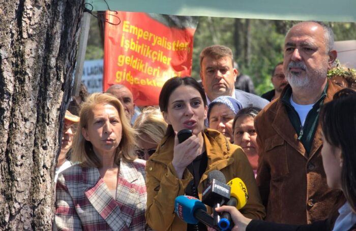 Özcan konuşmasında, “Elbette bedenler tutsak edilebilir, ama fikirler asla tutsak edilemez” diyerek Esra Işık’a selam gönderdi. 2019 yılından bu yana mücadelenin içinde olduklarını vurgulayan Özcan, “O zaman çıktığımız o yolda havamızı, toprağımızı, suyumuzu, zeytinimizi, ağacımızı vermiyoruz derken, 2026 yılında iş evlere kadar, mezarlara kadar, hayvanların durduğu yere kadar, yaşama kadar geldi. Artık Milas’ta yaşam sürgün edilmek isteniyor” dedi.