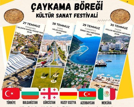 Türkiye, Bulgaristan, Gürcistan, Kuzey Osetya, Azerbaycan ve Meksika’dan halk oyunları ekiplerinin katılacağı festival kapsamında, Selimiye ve Milas’ta en lezzetli çaykama böreğini yapan isimler gerçekleşecek yarışmanın sonucunda belirlenecek.